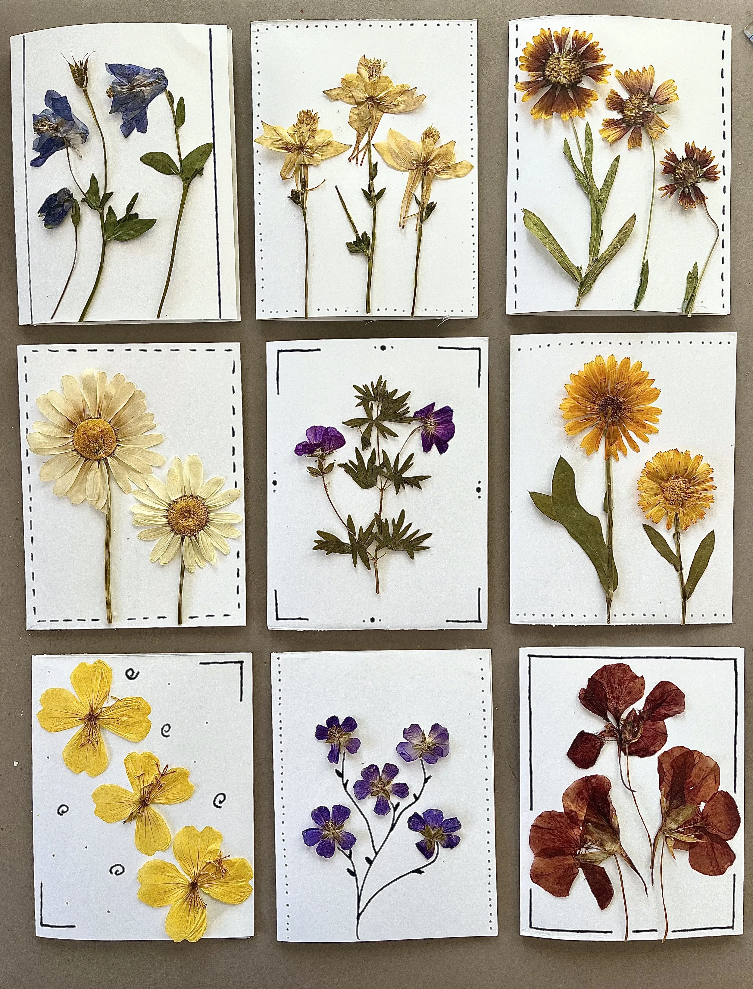 We’s used flowers from around the farm that I have pressed to decorate bookmarks and cards and I will talk about which flowers press well so you can start pressing your own flowers!